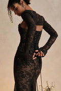 Vestido Largo Negro de Encaje Moldeador